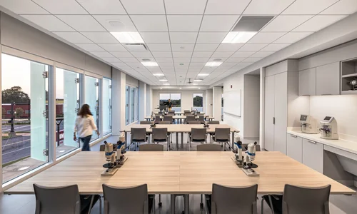 Through a deliberate and acoustically attuned renovation, the former Arts & Administration Building at the University of Missouri - St. Louis is transformed from an under-utilized support facility into a vibrant, light-filled home for the Departments of Music and Art+Design. Nestled beside the Touhill Performing Arts Center – and positioned between airport flight path and light-rail hum – the reimagined Creative Arts Building embraces its context and constraints, leveraging limitation into creative opportunity.