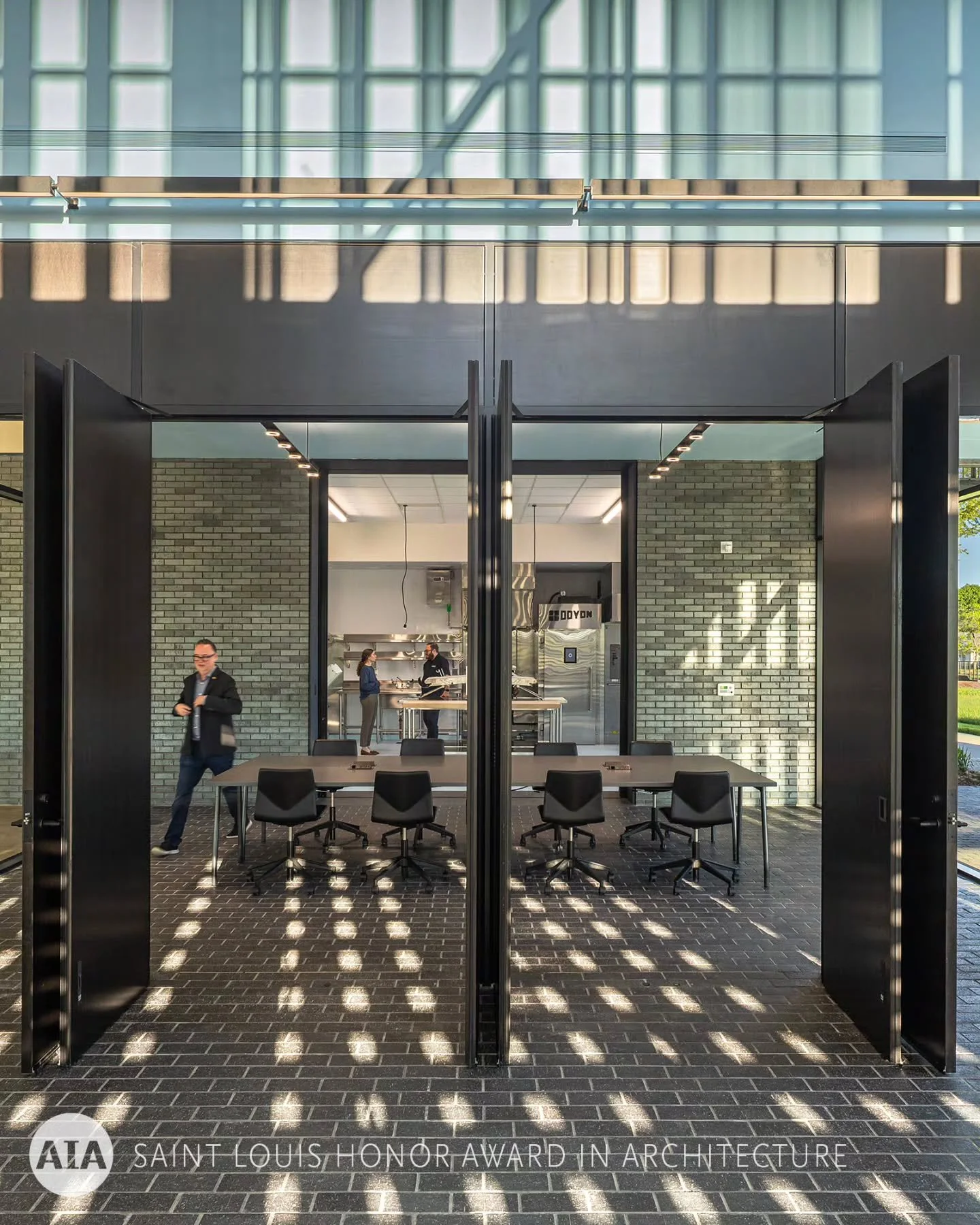 “Market Center of the Ozarks presents an exceptional program through an elegant and meticulously composed design. Deeply inspired by local culture and vernacular, the building reflects the order and precision inherent in the farming process. Its richly layered façade reveals a remarkable attention to detail, transforming gracefully from day to night and creating a dynamic dialog between structure, light, and context.”
